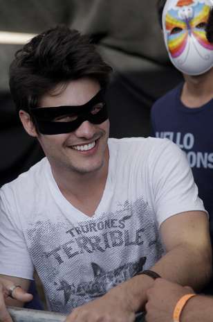 Na tarde de domingo, os colírios da novela juvenil e o ex-BBB foram na concentração do Bloco da Ladeira e curtiram Naldo. Mesmo fantasiados com máscaras de Carnaval eles não escaparam do assédio de algumas fãs.